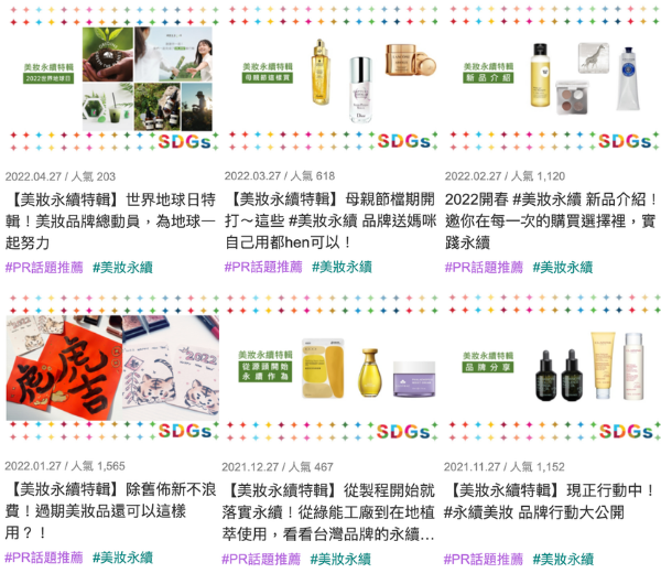 越來越多美妝品牌將更多心力放在美妝永續發展上,@cosme將各美妝品牌與美妝永續相關的產品及活動新聞稿整理成美妝永續TAG,讓更多的用戶意識到美妝產業永續發展的重要性,也更方便搜尋相關資料。