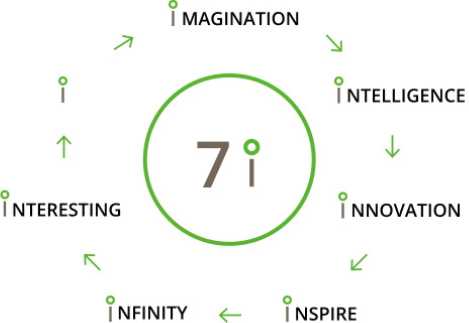 為了更具體地呈現istyle集團所珍視的理念,「7i」精神誕生了!這是七個以字母「i」開頭的英文單詞,包含了每一個我們在意的價值創造,統稱為「7i」。這七件事其實是有固定順序的,是從「想像(imagination)」開始的一個循環。